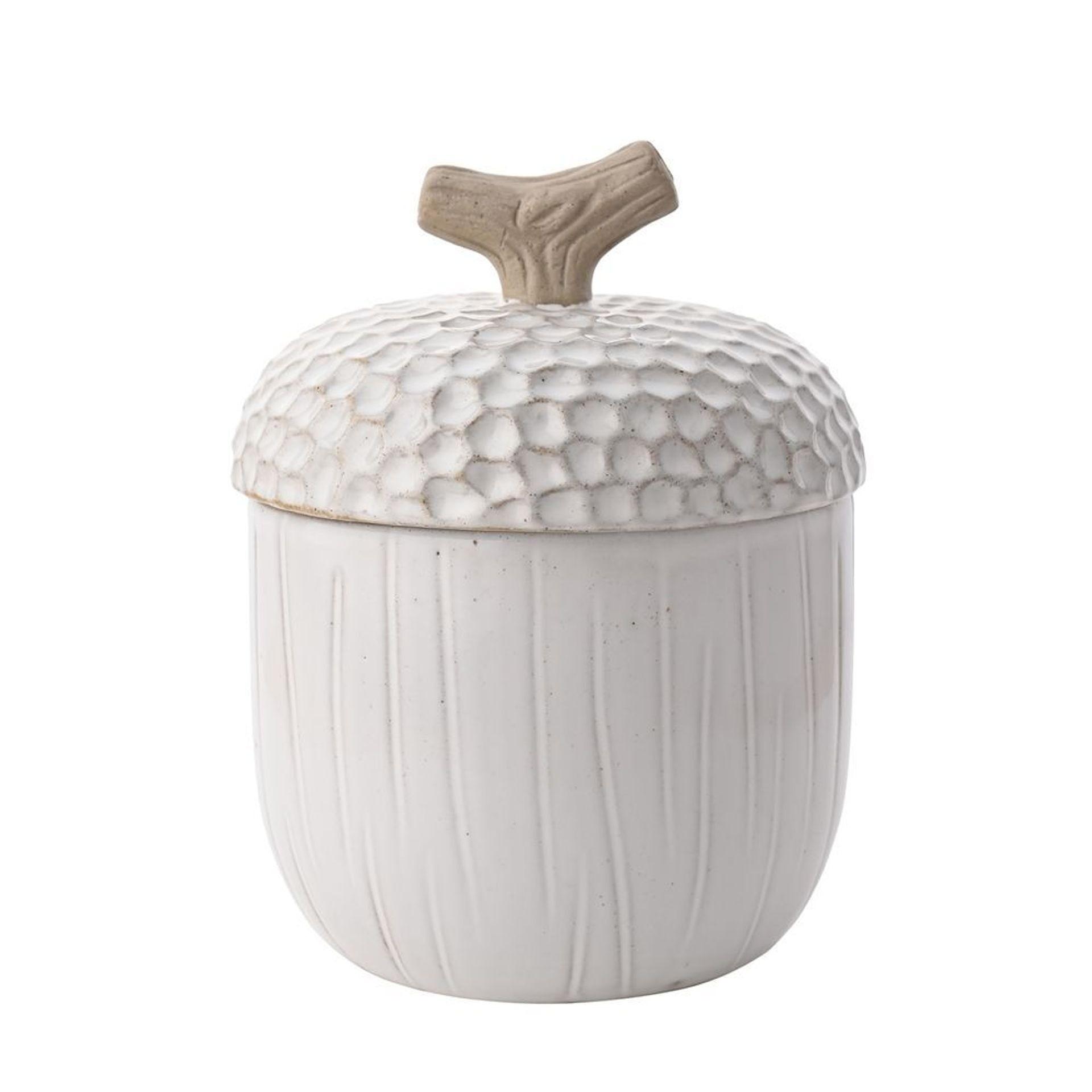Bocal en céramique en forme de gland, finition blanche émaillée, parfait pour ranger avec style dans votre cuisine.