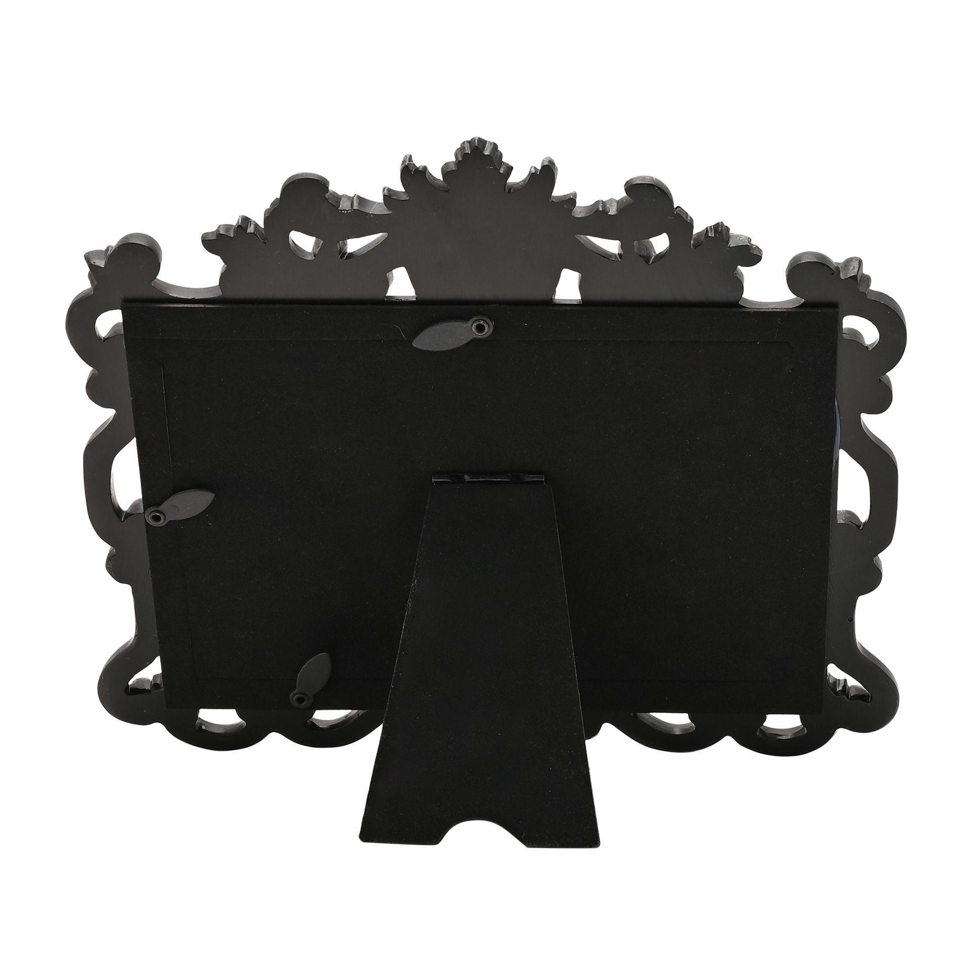 Cadre photo noir orné de motifs gothiques, pour une touche de fantaisie sombre et élégante dans votre décoration. Format photo 10 x 15 cm.
