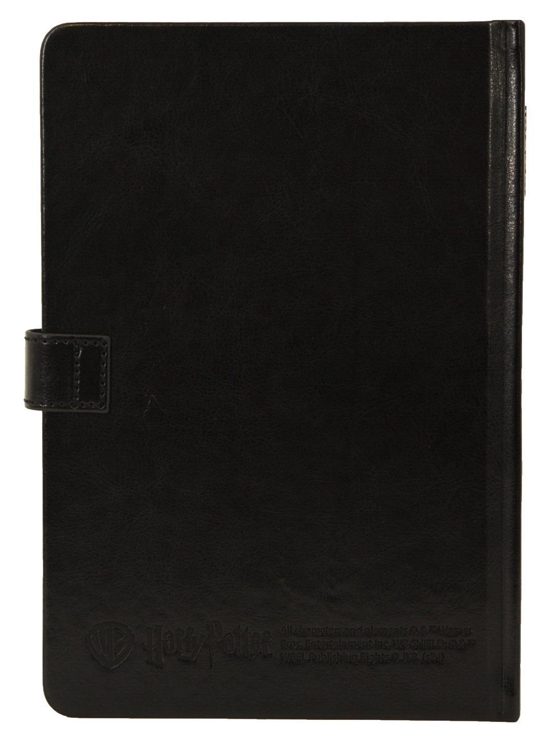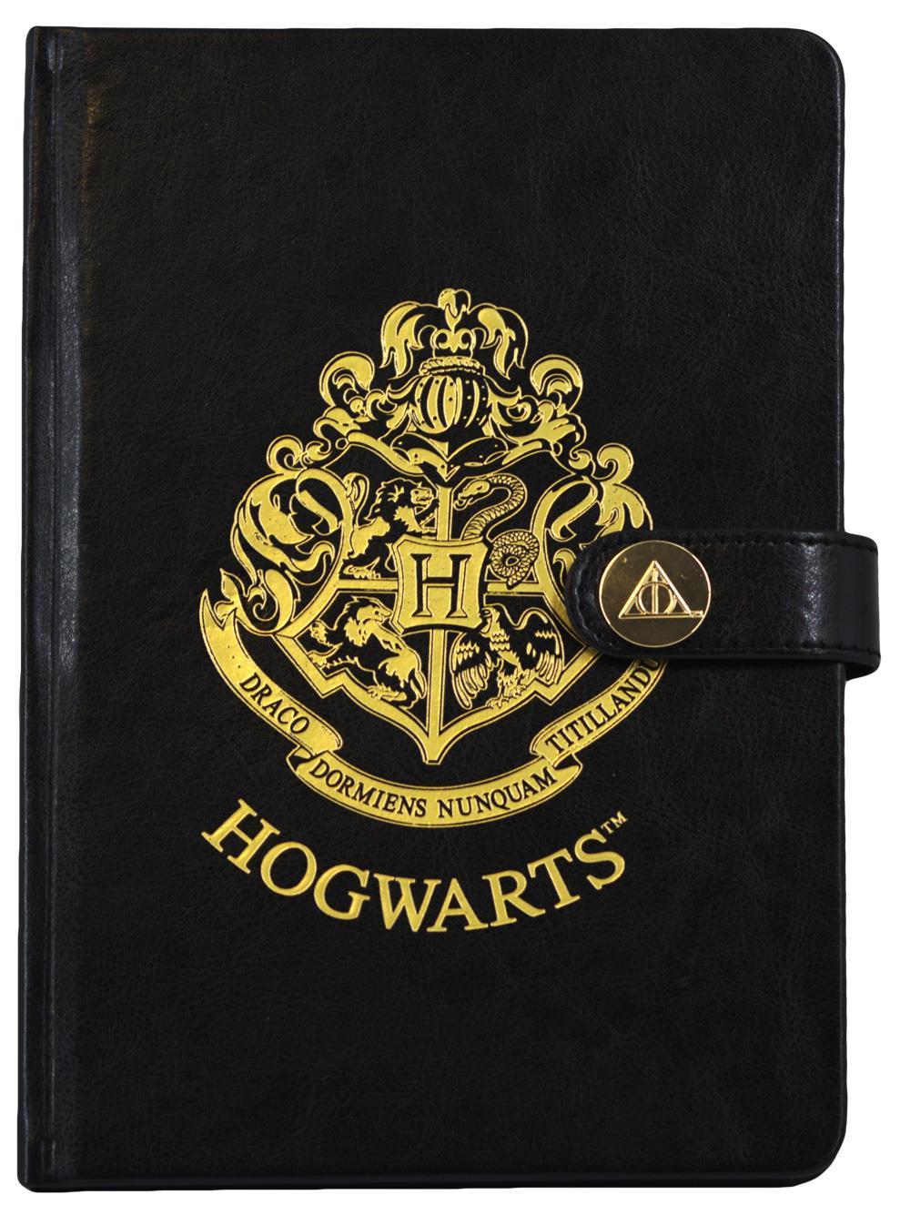 Carnet effet parchemin avec écusson de Poudlard et fermoir métallique élégant.