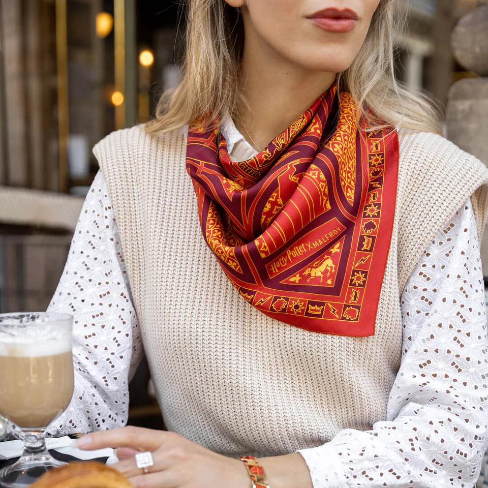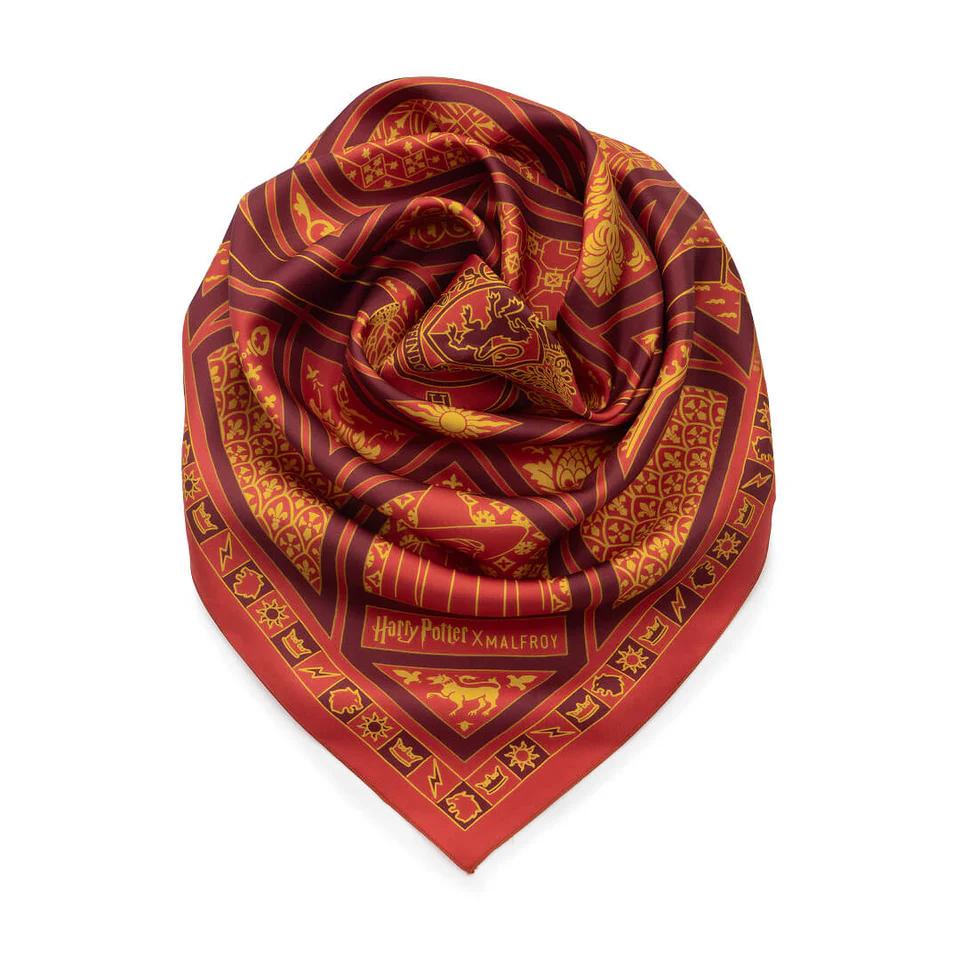 Ce bandana en soie est un hommage aux valeurs de courage. Son design, inspiré des tapisseries de la salle commune, met en scène le Professeur McGonagall, l'épée de Gryffondor et les qualités de la maison inscrites en lettres d'or.