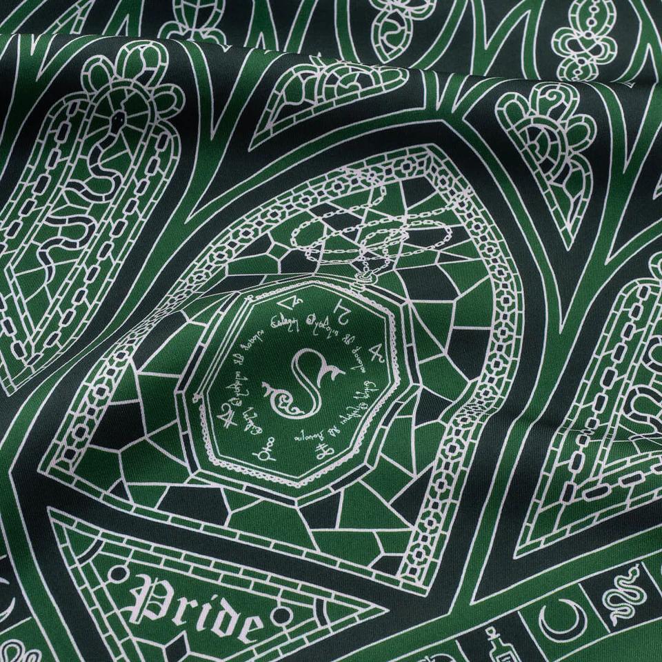 Ce bandana en soie est un hommage aux valeurs de détermination. Son design, inspiré des vitraux de la salle commune, met en scène le Professeur Rogue, le pendentif de Salazar et les qualités de la maison inscrites en lettres d'argent.