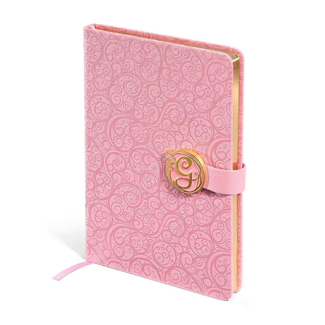 Carnet élégant de Glinda, orné de détails raffinés, inspiré de Wicked.