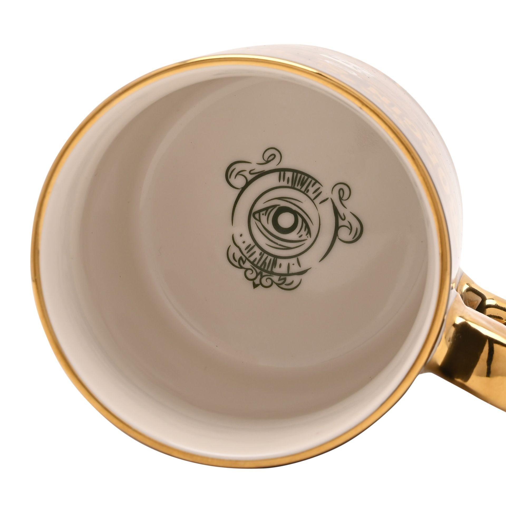 Plongez dans l'élégance obscure de l'Allée des Embrumes avec ce mug aux artefacts sombres.