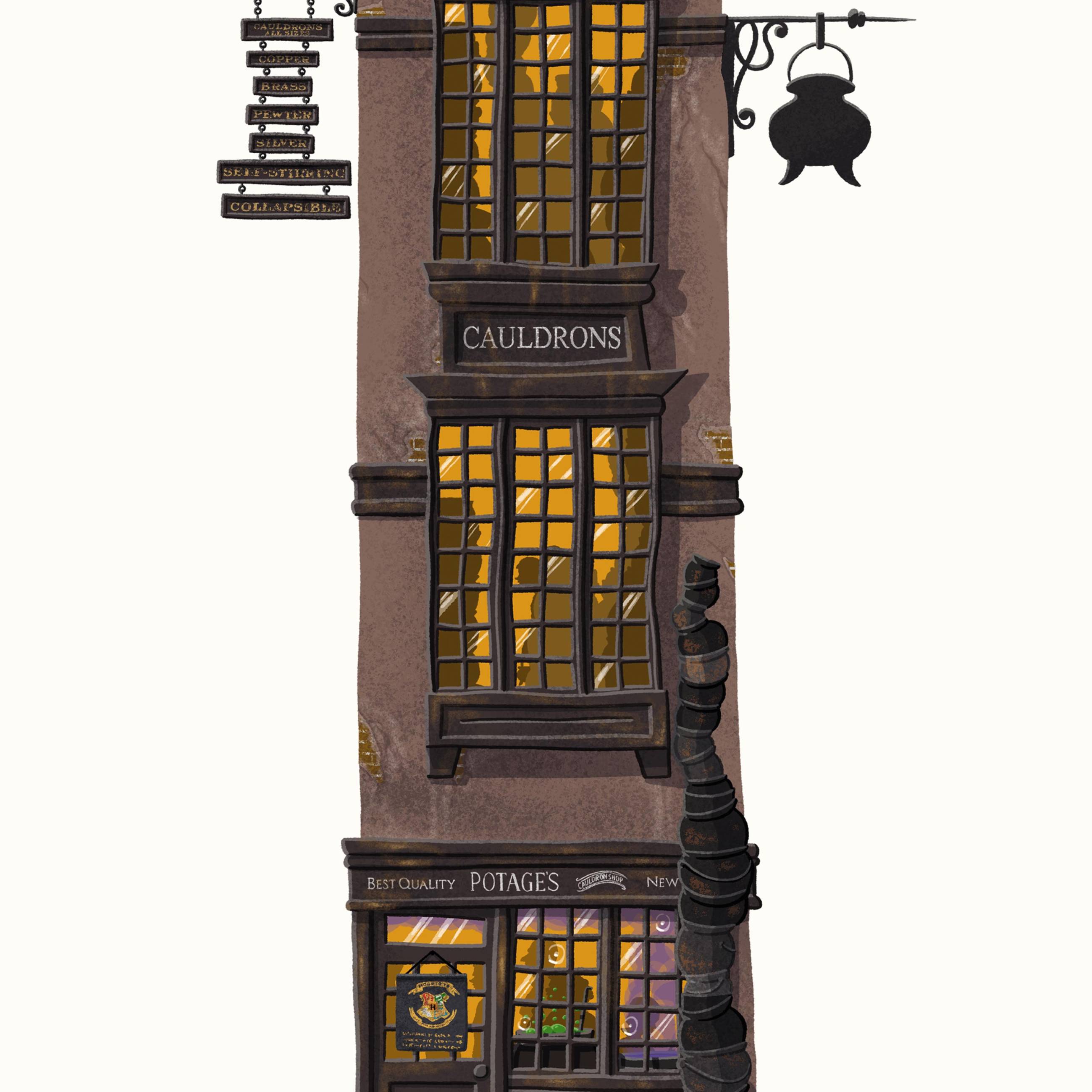 Collectionnez toutes les illustrations MinaLima de la série des Boutiques du Chemin de Traverse grâce à votre boutique Harry Potter Les 4 Maisons.