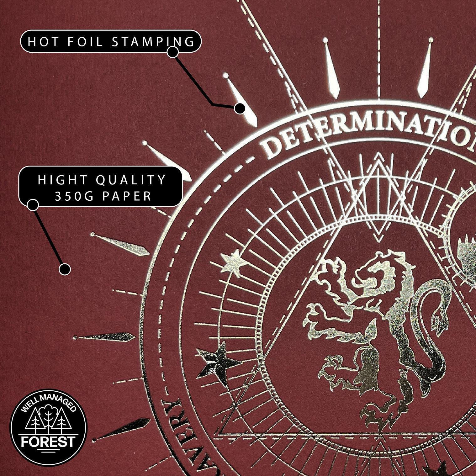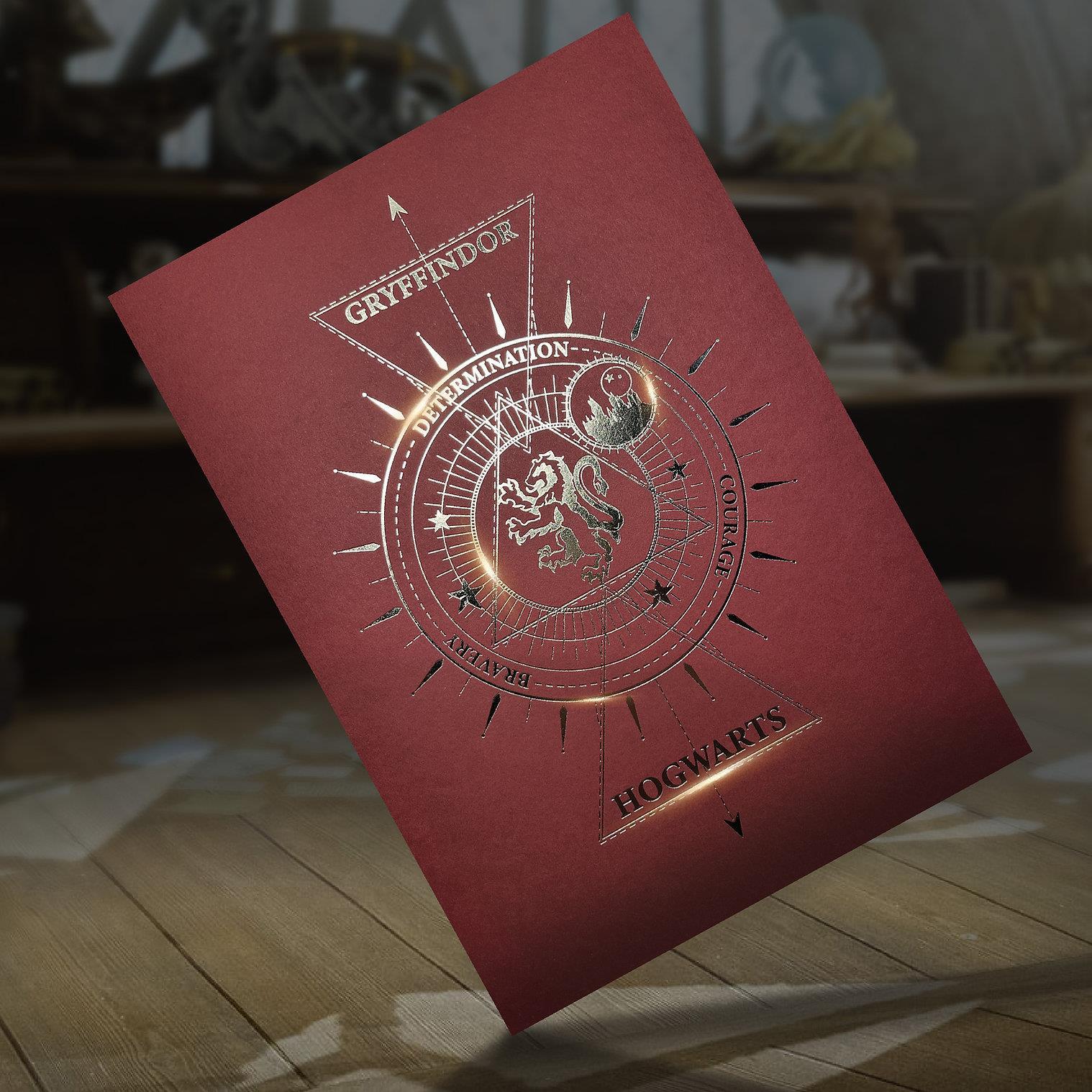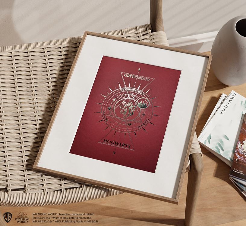 Un Artprint raffiné de la maison Gryffondor, en dorure à chaud or sur papier rouge profond.