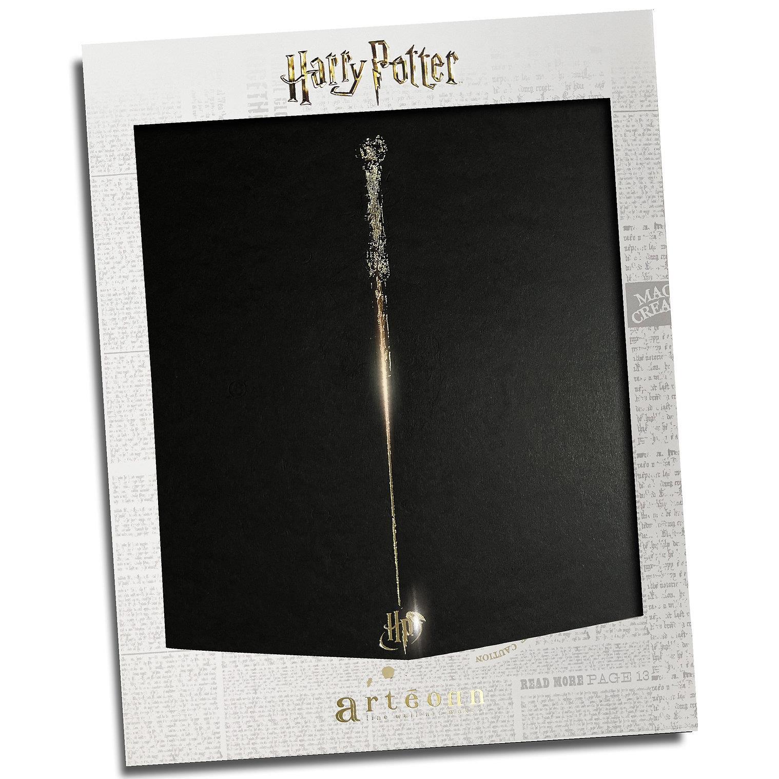 Un Artprint raffiné de la baguette de Harry Potter™ en dorure à chaud or, sous licence officielle.