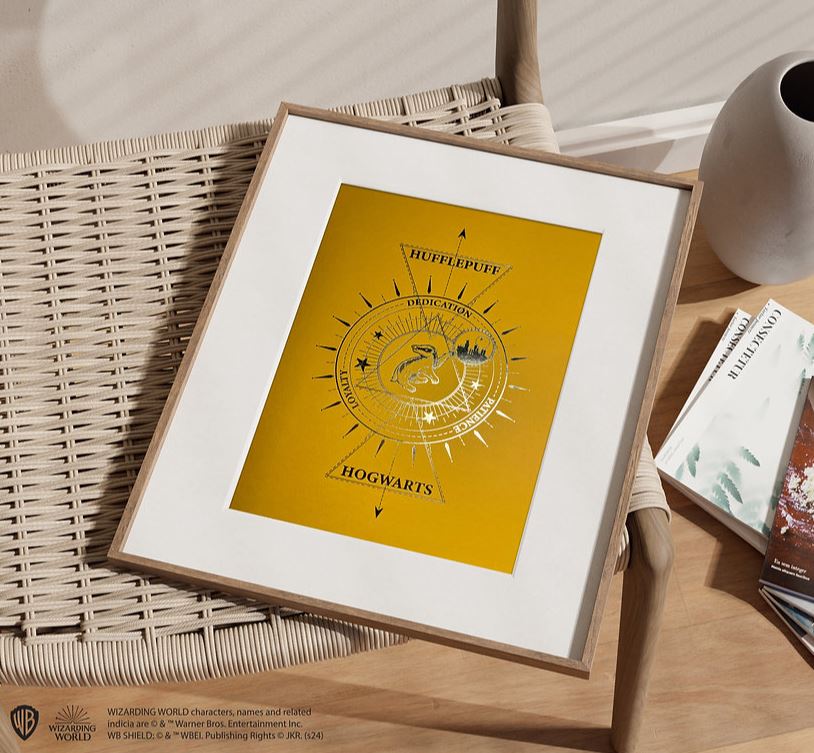 Un Artprint raffiné de la maison Poufsouffle, en dorure à chaud or sur papier jaune profond.