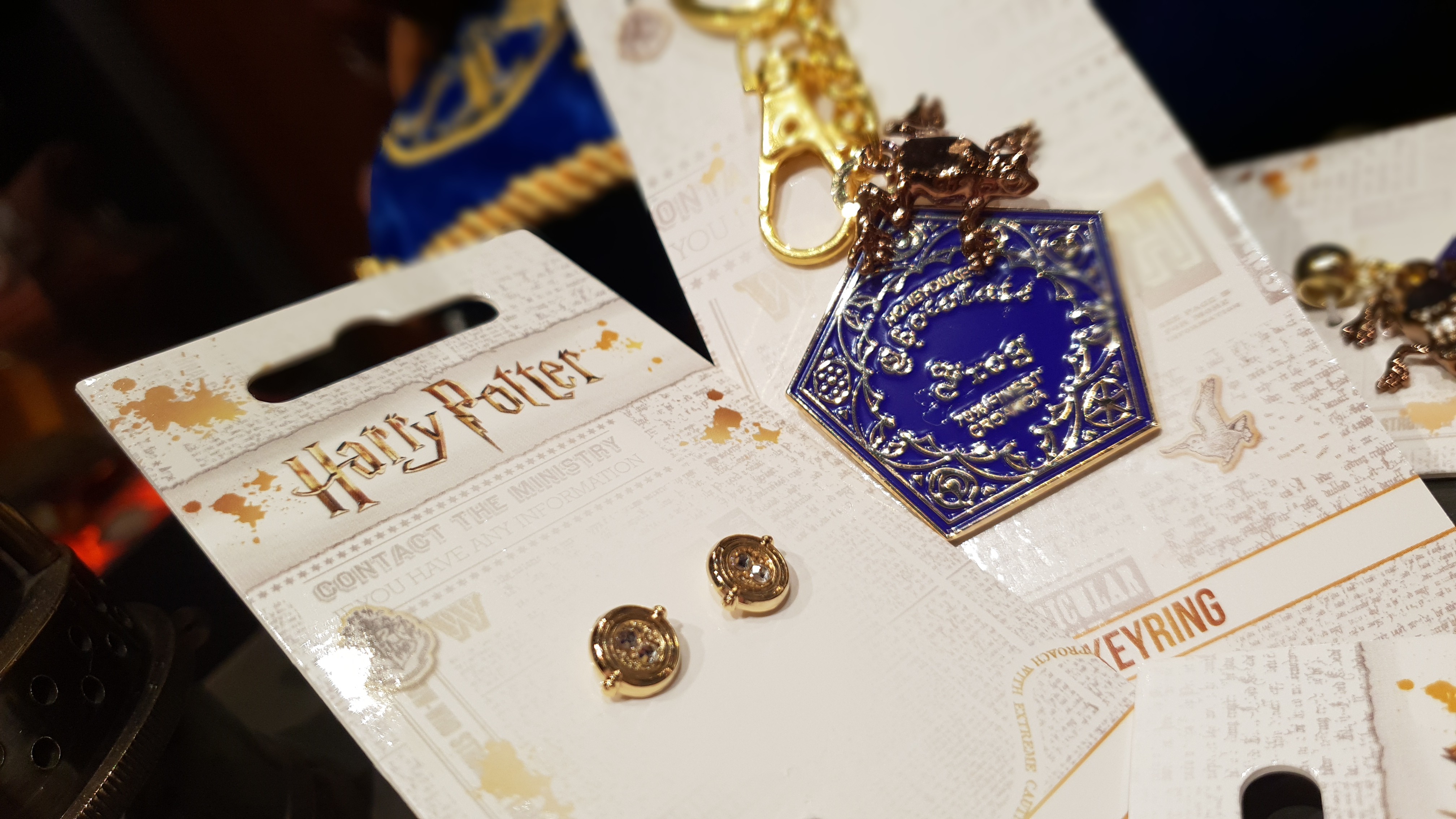 Paire de boucles d'oreilles Harry Potter plaquées en argent, représentant deux retourneurs de temps immobiles, ornés de brillants pour illustrer le sablier.