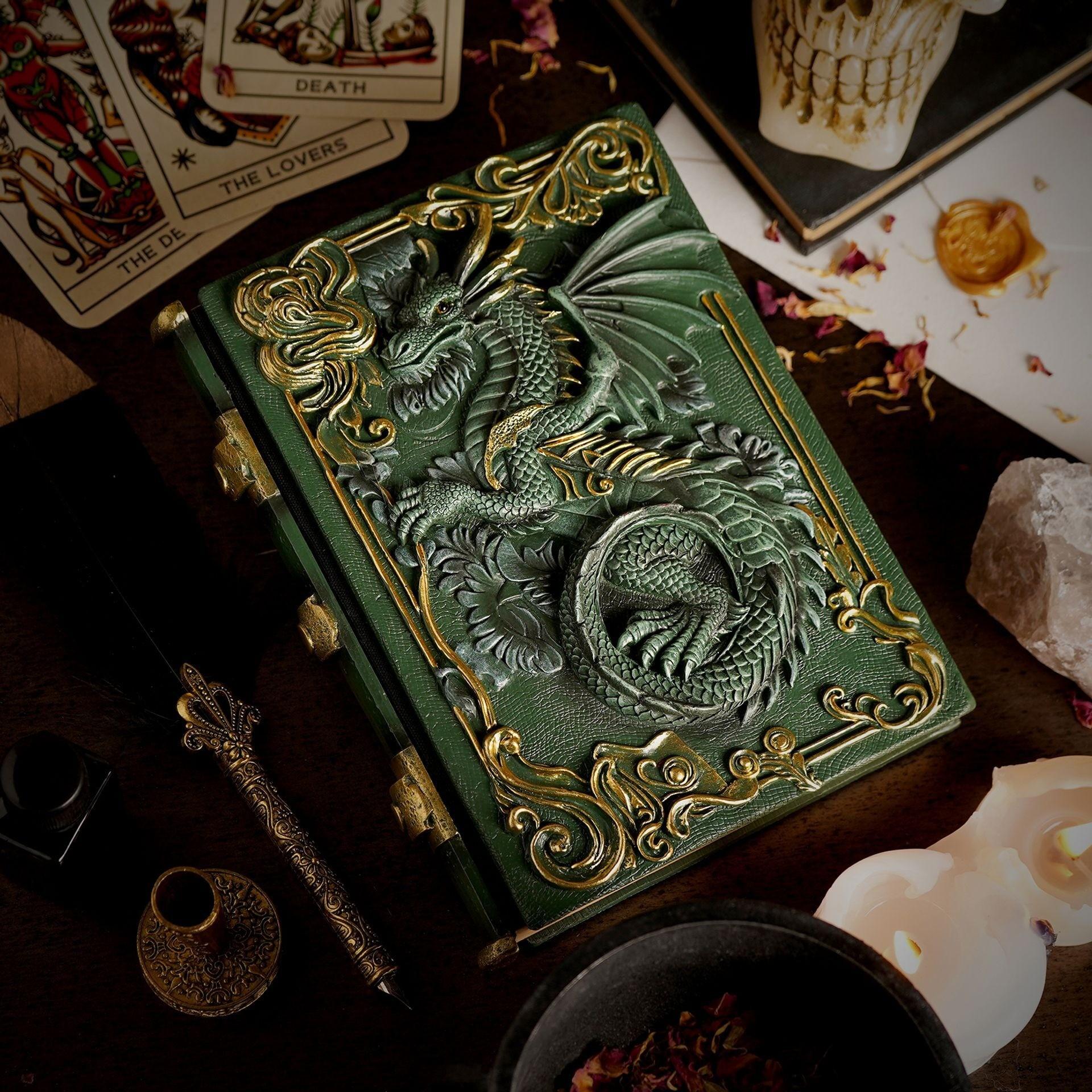 Un carnet à l’effet 3D saisissant, orné d’un dragon vert majestueux. Parfait pour les rêveurs, les auteurs en herbe, et les amoureux de fantasy.