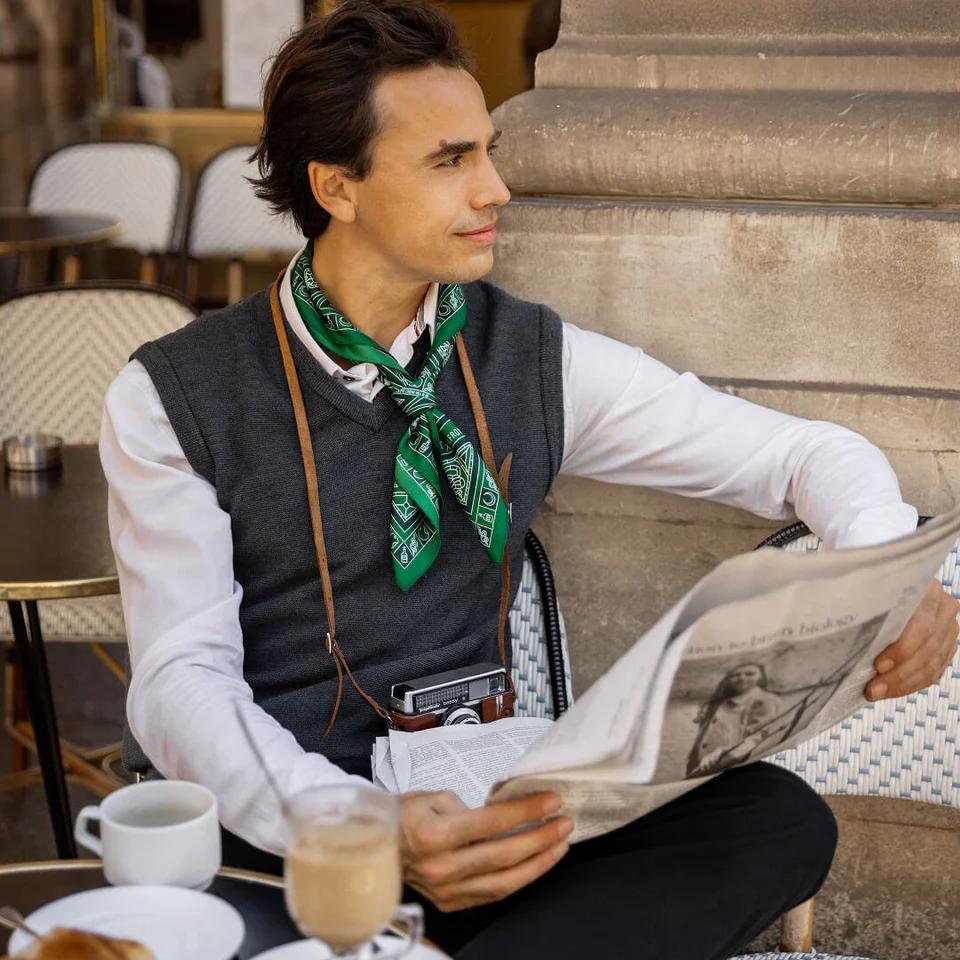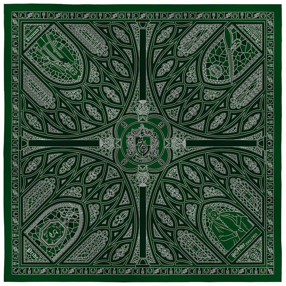 Ce bandana en soie est un hommage aux valeurs de détermination. Son design, inspiré des vitraux de la salle commune, met en scène le Professeur Rogue, le pendentif de Salazar et les qualités de la maison inscrites en lettres d'argent.