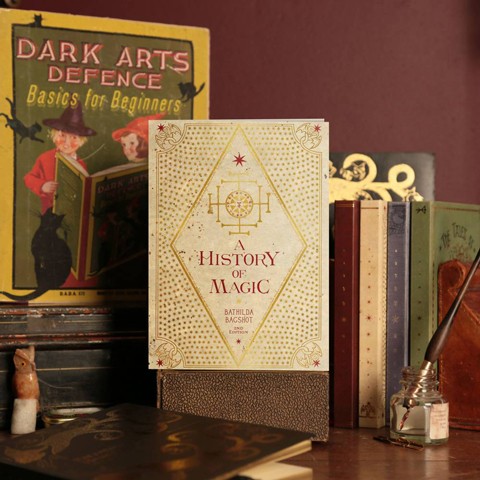 Miraphora Mina et Eduardo Lima ont conçu une grande gamme de livres pour Wizarding World, en leur donnant un aspect "vieilli", en ajoutant du texte à l'intérieur et même parfois en annotant des commentaires à la main pour leur donner une touche plus réelle. Ces livres font parti de la bibliothèque essentielle d'Hermione Granger™. Ecrit par Bathilda Tourdesac, 'L'histoire de la magie' fait parti des livres à avoir pour tout étudiant à Poudlard.