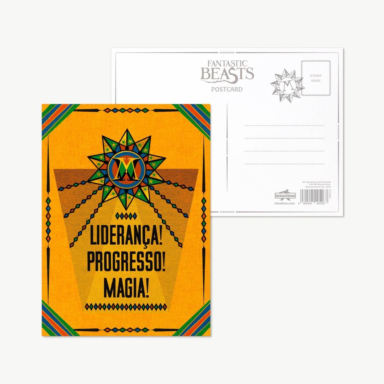 Affichez votre soutien à Vicência Santos avec cette carte postale reprenant son slogan électoral "Liderança! Progresso! Magia!". Inspirée du film Les Animaux Fantastiques : Les Secrets de Dumbledore, cette reproduction fidèle du design officiel de MinaLima est un véritable objet de collection pour les fans du Wizarding World. Le verso comporte un espace pour rédiger un message et inscrire une adresse, en faisant un souvenir unique à envoyer ou à conserver.