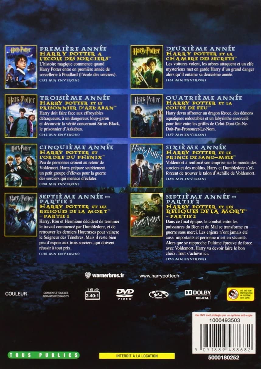 Coffret contenant l'intégrale des 8 films Harry Potter au format DVD.
