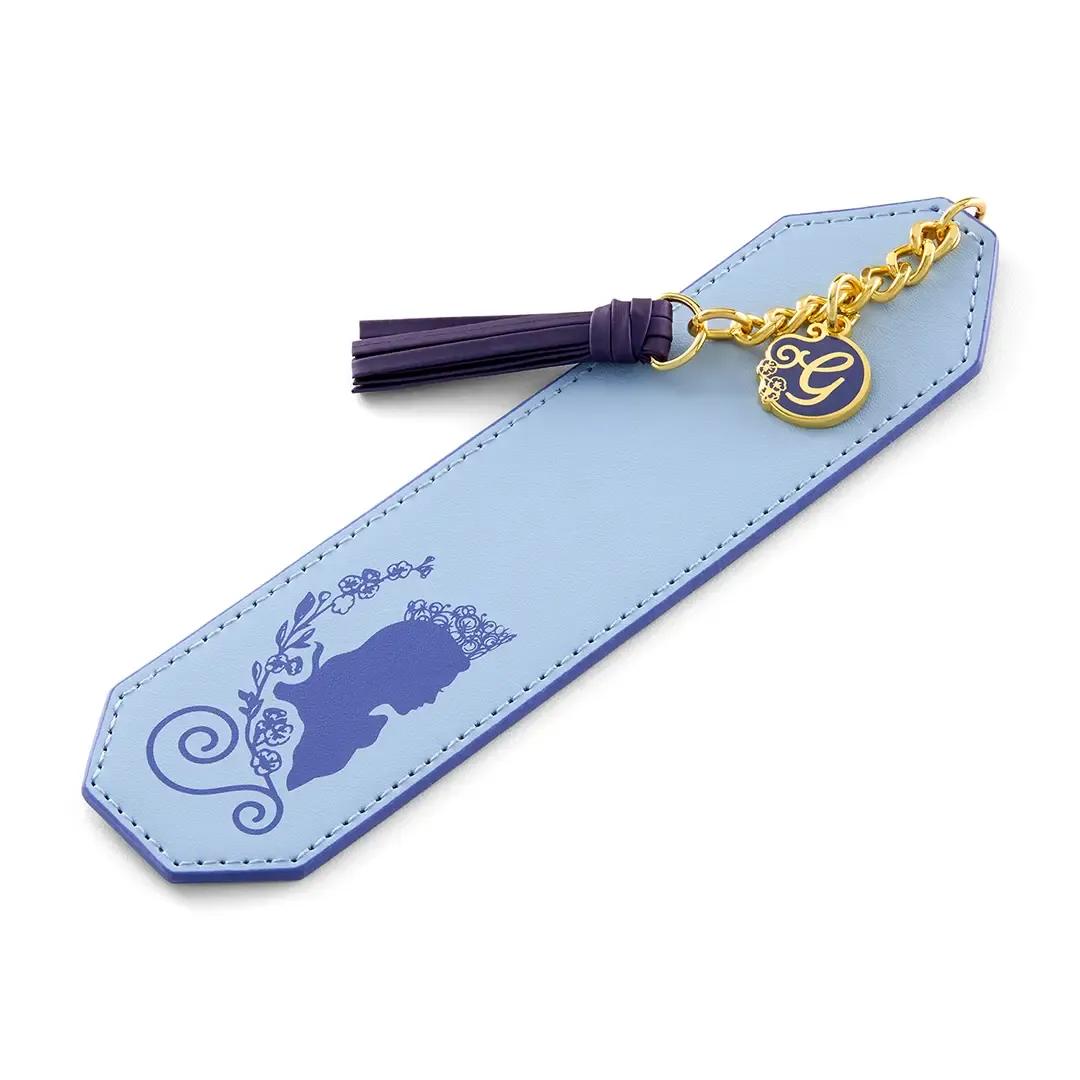 Chacun des marque-pages est fabriqué en simili cuir doux et résistant, décliné dans les teintes emblématiques de leurs univers respectifs : mauve pâle pour Glinda, turquoise profond pour Elphaba. Leurs silhouettes délicatement embossées y figurent, accompagnées d’un pompon assorti et d’un pendentif métallique portant l’initiale de leur prénom – “G” pour Glinda, “E” pour Elphaba.