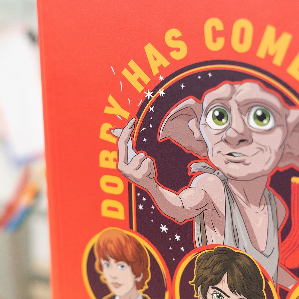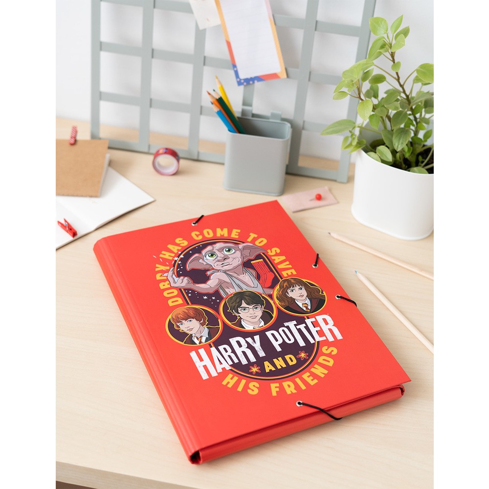 Découvrez le charme magique de l'univers de Harry Potter avec notre farde à rabat spéciale, ornée des personnages adorés : Dobby, Harry, Ron et Hermione ! Plongez dans le monde des sorciers chaque fois que vous organiserez vos documents, notes et souvenirs avec cette farde à rabat enchanteresse.