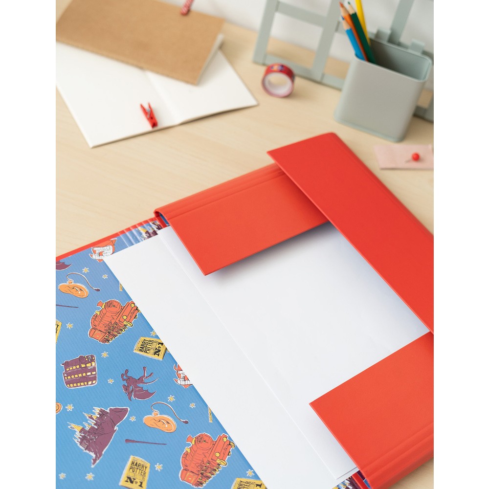 La farde à rabat offre non seulement une manière élégante d'organiser vos documents importants, mais elle vous transporte également dans l'univers magique de Poudlard à chaque fois que vous l'utilisez. Les couleurs riches et les détails captivants font de cette farde un objet de collection parfait pour les fans dévoués de la saga Harry Potter.