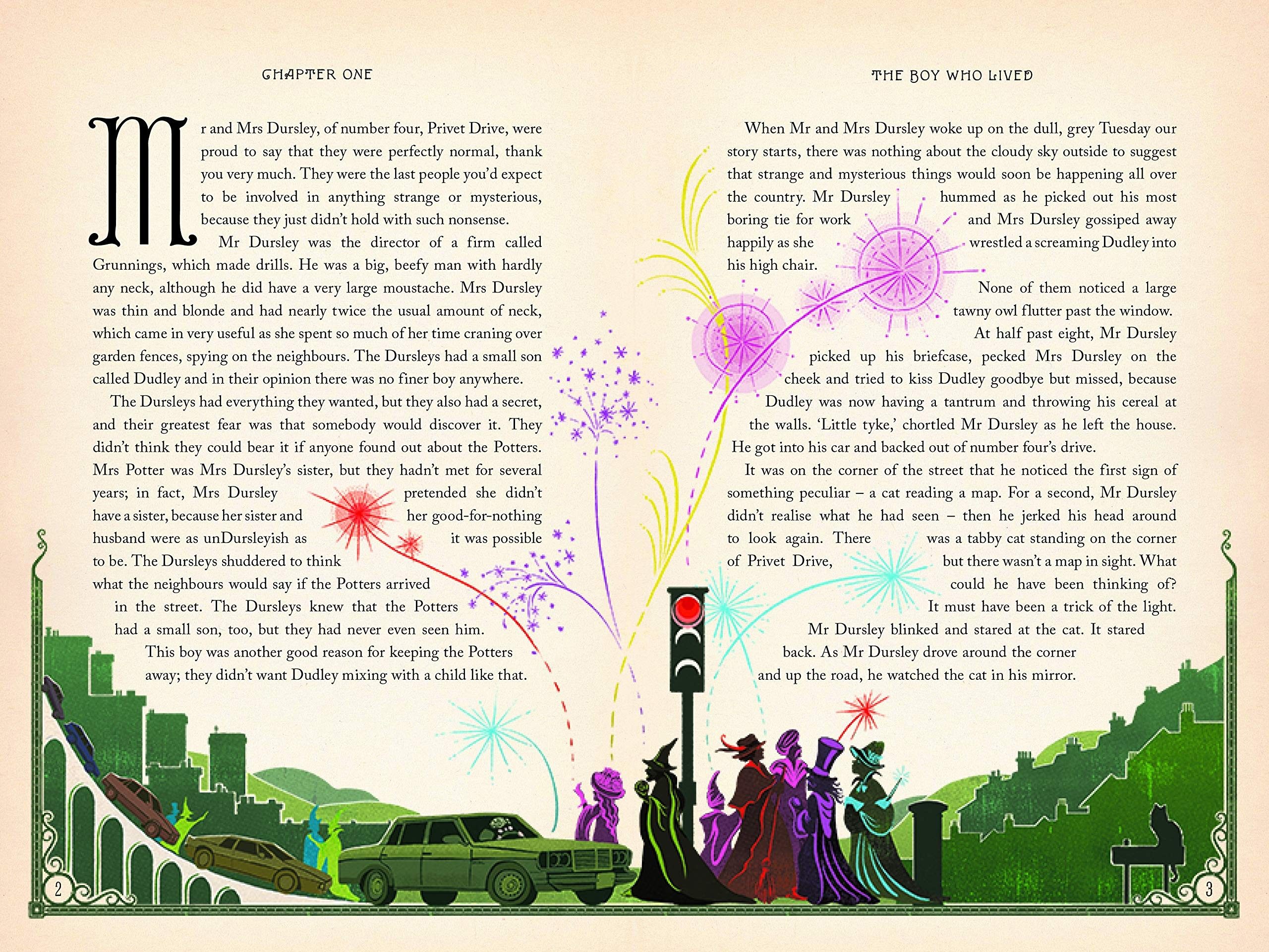 An irresistible new edition of Harry Potter and the Philosopher's Stone created with ultra-talented designers MinaLima, the design magicians behind the gorgeous visual graphic style of the Harry Potter and Fantastic Beasts films. J.K. Rowling's complete and unabridged text is accompanied by MinaLima's handsome colour illustrations on nearly every page, superb design, and eight exclusive, interactive paper-engineered elements - including Harry's Hogwarts letter, the magical entrance to Diagon Alley, a sumptuous feast in the Great Hall of Hogwarts and more.