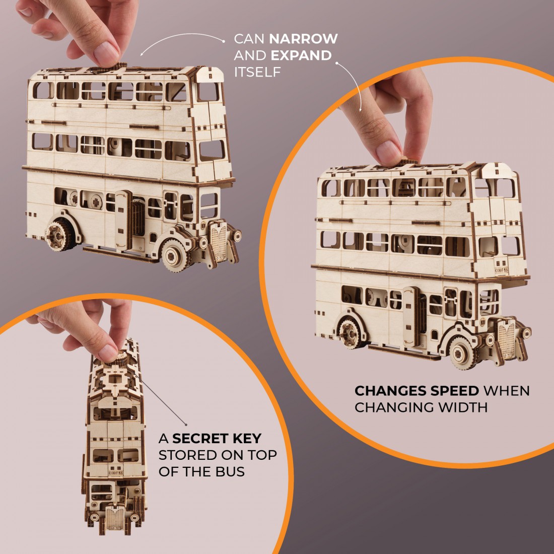 La collection exceptionnelle d'Ugears de puzzles mécaniques 3D, de kits de modèles DIY, d'automates, de robots, de boîtes de puzzle en bois et de kits de modèles STEM Lab est appréciée par tous les âges et tous les niveaux de compétence en modélisation, des débutants aux amateurs de modélisme expérimentés. Le Magicobus est particulièrement recommandé pour les fans de Harry Potter, les amateurs de modélisme, les fans de l'exceptionnelle collection automobile d'Ugears de voitures classiques, de voitures de course, de camions et de buggies (et maintenant un bus !), et vraiment tous ceux qui aiment construire des trucs sympas. Le kit de modèle Magicobus est une excellente idée de cadeau pour les parents d'enfants qui aiment la série de films Harry Potter, ou pour les parents à la recherche d'un projet d'artisanat amusant à construire avec leurs enfants. Vos enfants s'ennuient un après-midi pluvieux ? Laissez le Magicobus venir à la rescousse !