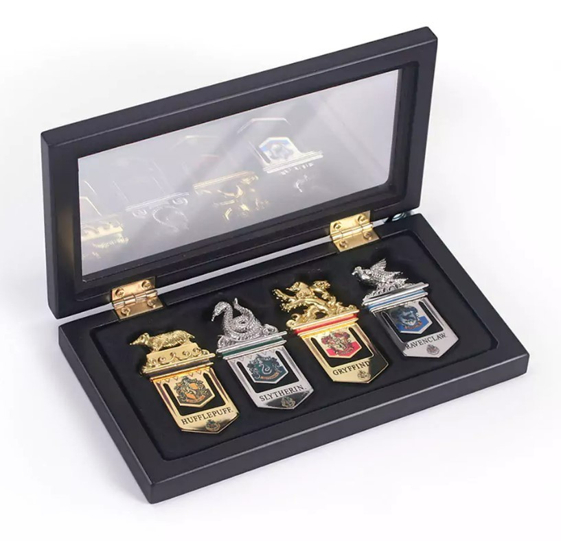 Insufflez la magie de Poudlard dans toutes vos lectures avec ces 4 marque-pages à l’effigie des maisons de Gryffondor, Poufsouffle, Serdaigle et Serpentard.