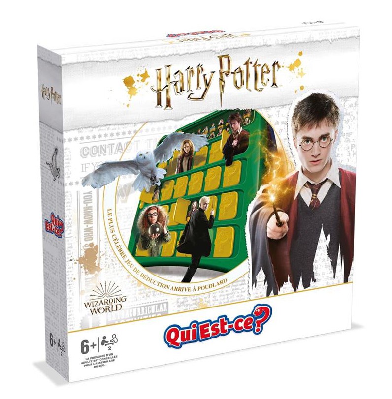 Les héros de la saga Harry Potter vous attendent dans cette édition spéciale du célèbre jeu Qui Est-ce ? Arriverez-vous à découvrir le personnage mystère avant votre adversaire, sans vous servir de la magie ? Pour 6 ans et +.