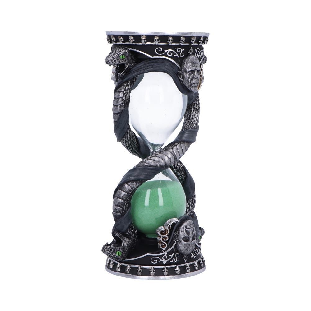 Sablier Mangemort en résine, peint à la main, avec sable vert, hauteur 18 cm.