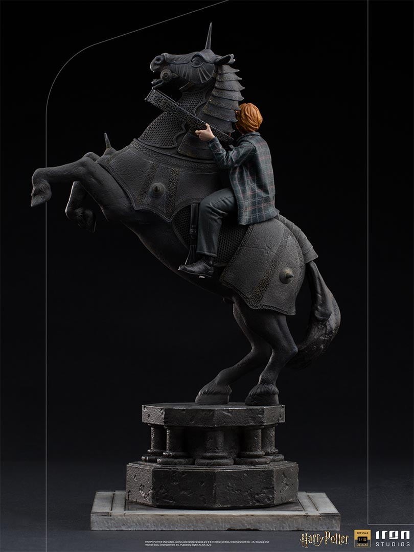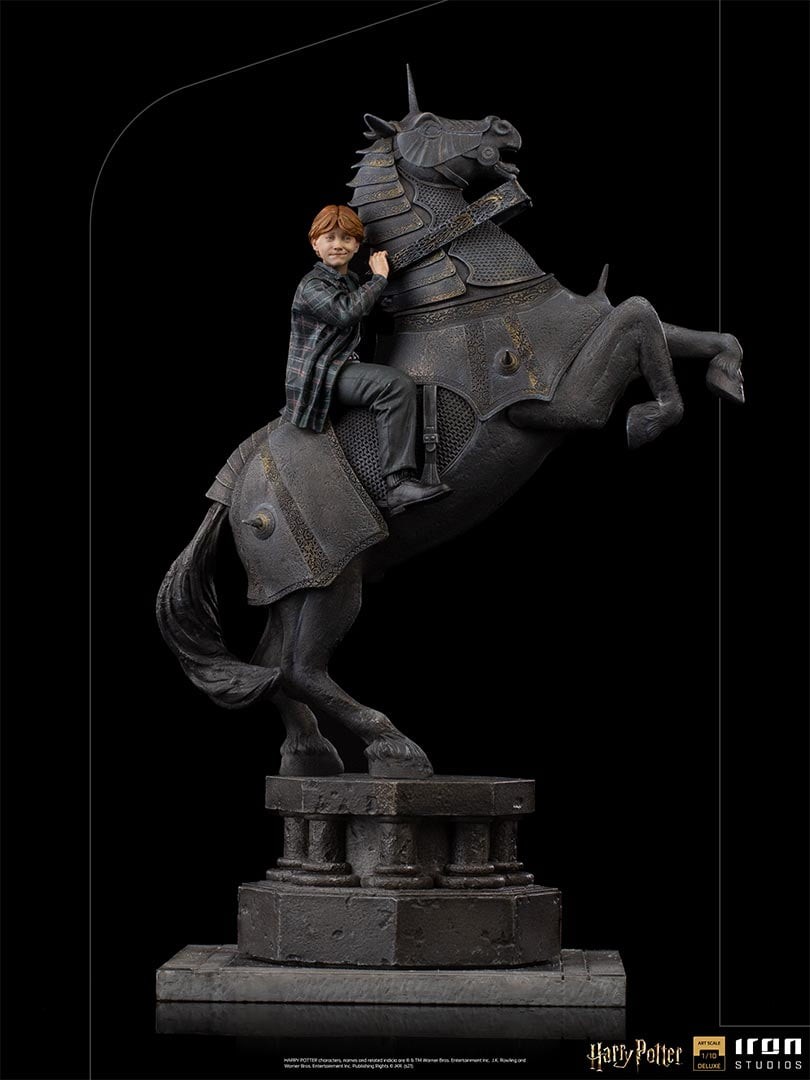 Échec et mat d'Iron Studios avec Ron dans une nouvelle statue à collectionnerMonté sur un énorme cheval noir en armure de combat, représenté par une statue qui fait partie d'un jeu d'échecs réaliste, le petit garçon aux cheveux roux, Ronald Bílius Weasley, mieux connu sous le nom de Ron ou Rony, regarde habilement le paysage devant lui , analysant toutes les possibilités de gagner les échecs mortels du sorcierVersion enchantée du jeu de plateau classique, dans Wizard’s Chess, les pièces se déplacent d’elles-mêmes lorsqu'elles reçoivent un ordre du joueur, et de manière barbare, elles détruisent la pièce vaincue de l’adversaire. Ron, qui est le meilleur ami de Harry Potter et Hermione Granger, a une grande connaissance des échecs, et cette compétence était d'une grande importance dans « Harry Potter à l'École des Sorciers », dans la scène qui est maintenant reproduite dans la « Ron Weasley at the Wizard Chess Deluxe Art Scale 1/10 », ajoutant un autre moment historique de la saga dans la lignée des statues de Harry Potter, d'Iron Studios.