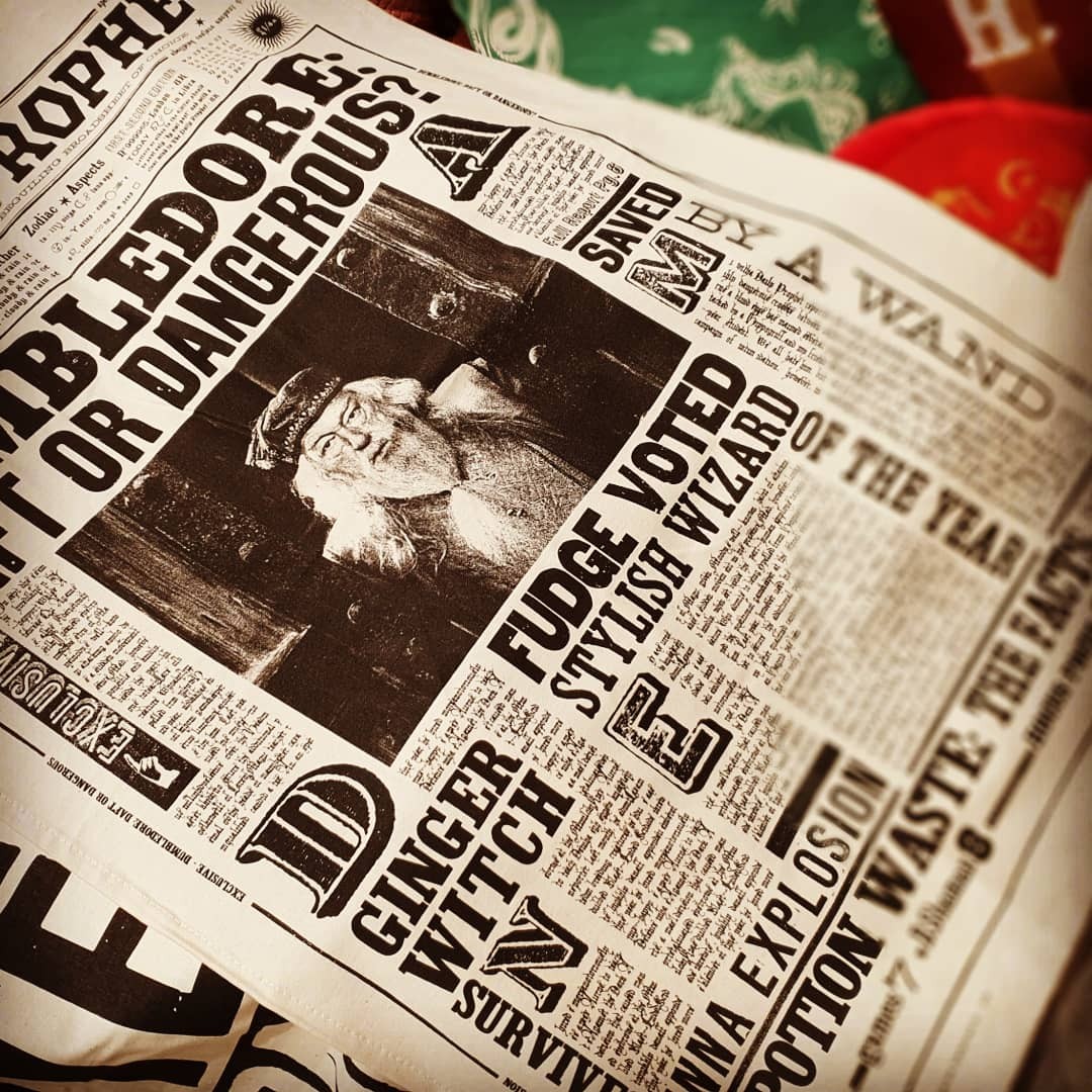 Ajoutez une touche ensorcelante à votre cuisine avec ce torchon en coton bio reprenant l’inoubliable une du Daily Prophet : « Dumbledore : fou ou dangereux ? »