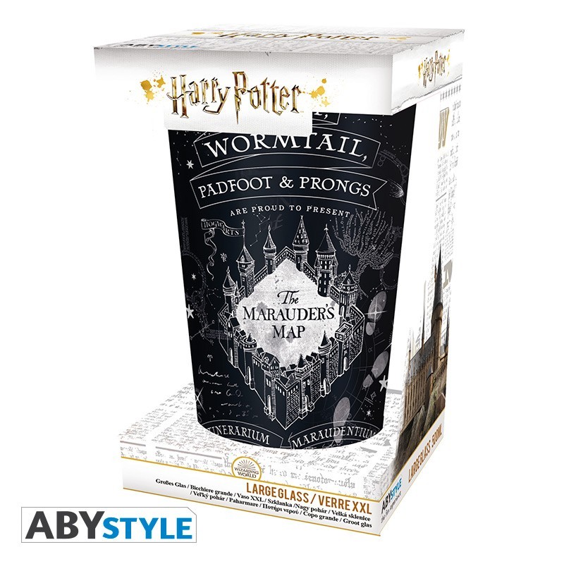 Un verre Harry Potter illustré de la carte du maraudeur de manière plus chique encore que d'habitude.