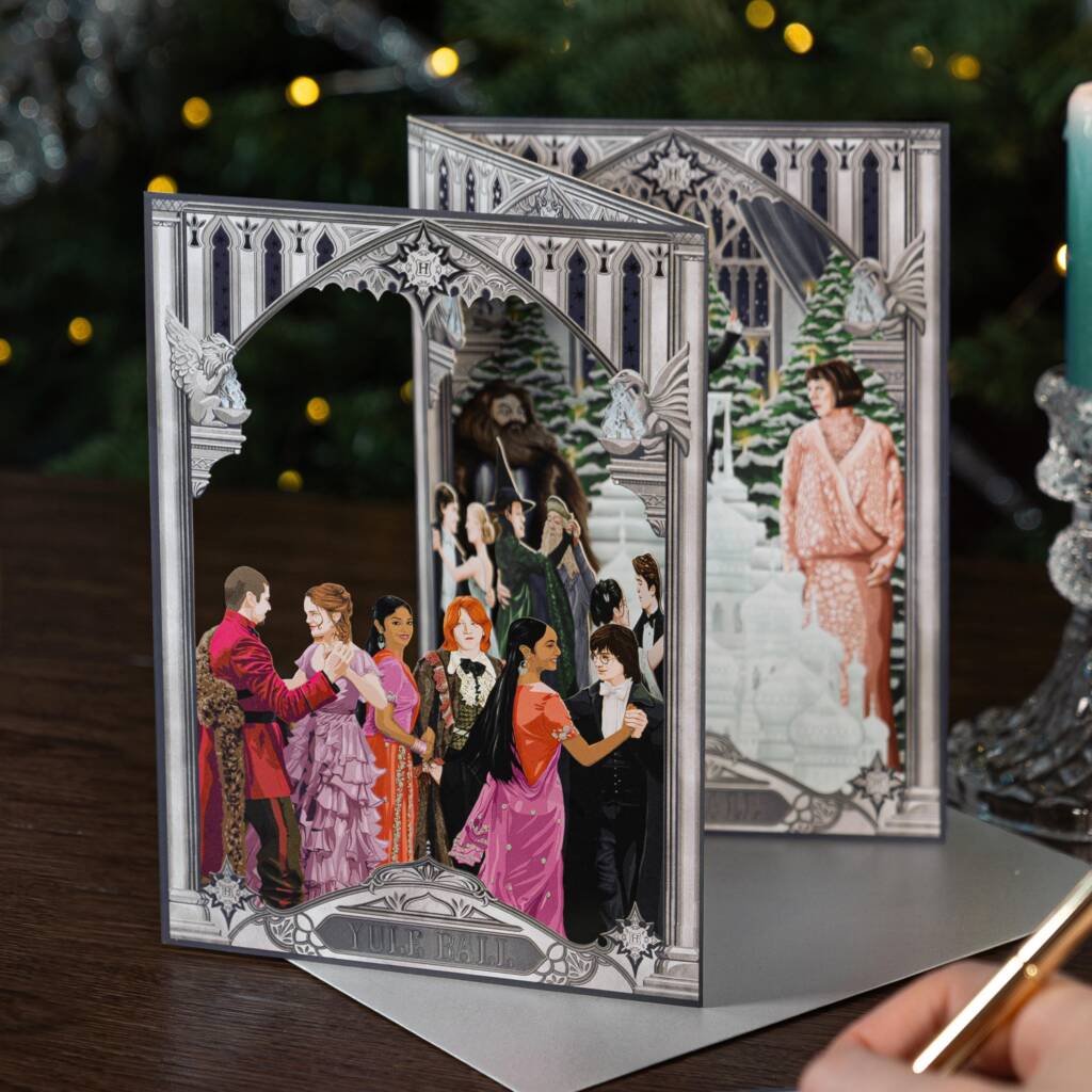 Envoyez vos vœux de Noël avec un soupçon de magie grâce à notre collection de cartes signées MinaLima. Que ce soit le set de cinq cartes aux détails argentés ou la spectaculaire carte 3D en concertina, ces pièces célèbrent la première danse des Champions dans un style raffiné et enchanteur.