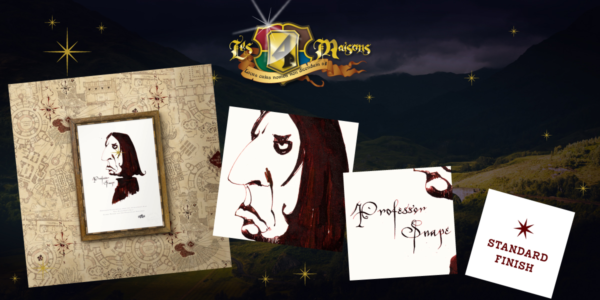La Gazette des 4 Maisons a une nouvelle qui va ravir les collectionneurs et les fans d’éléments graphiques iconiques tirés de l'univers de Harry Potter ! Nous sommes très fiers d’annoncer que MinaLima nous fait l'immense joie de proposer, directement via notre boutique en ligne, leur somptueux Art Print du Professeur Rogue, issu des détails de la Carte du Maraudeur.