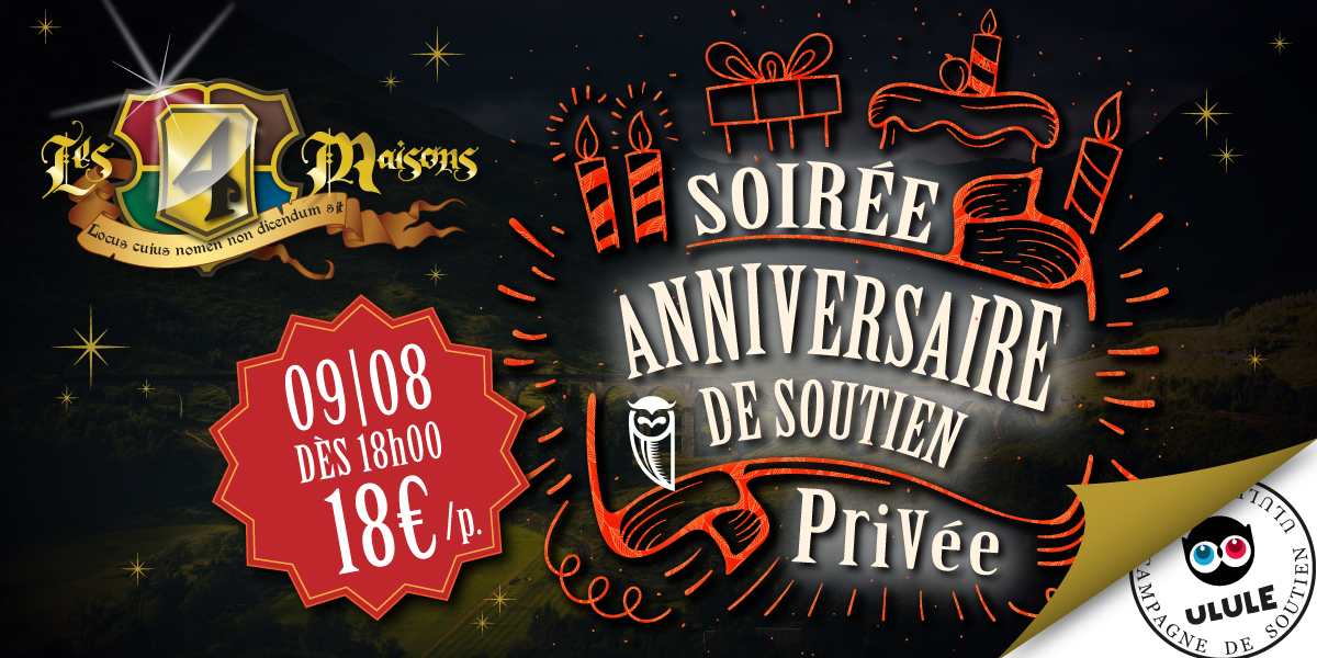 Alors cette année, on ne se contente pas de souffler des bougies. On se retrousse les manches de robe de sorcier, et on célèbre ensemble une grande Soirée Anniversaire de Soutien, le samedi 9 août à partir de 18h00 !