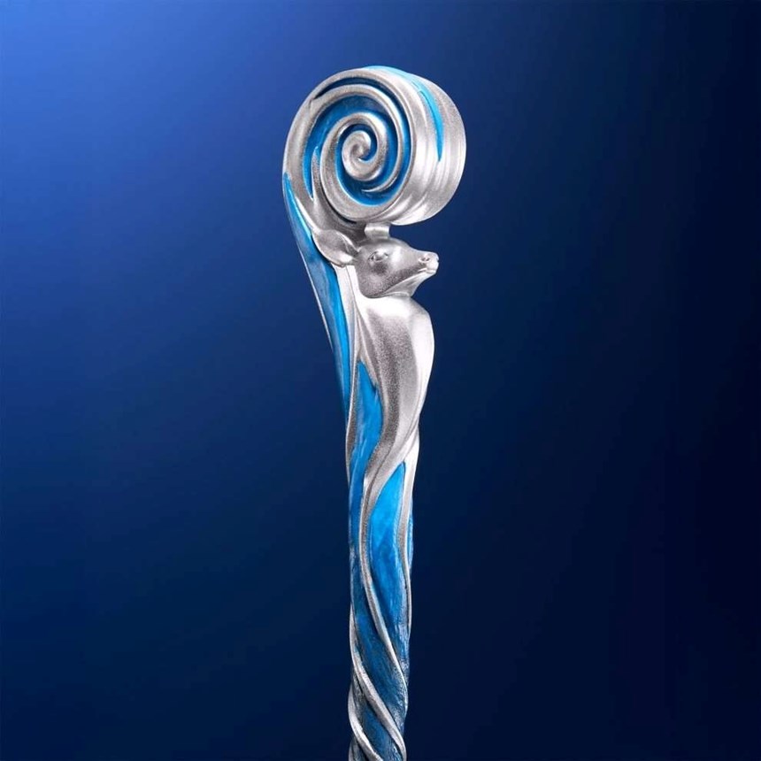 La première à ouvrir le bal ? L’un des plus beaux et puissants enchantements du monde des sorciers : Expecto Patronum. Sa forme élégante arbore une spirale argentée et bleue qui s’èlève jusqu’au buste d’un majestueux cerf, le Patronus emblématique de Harry Potter.